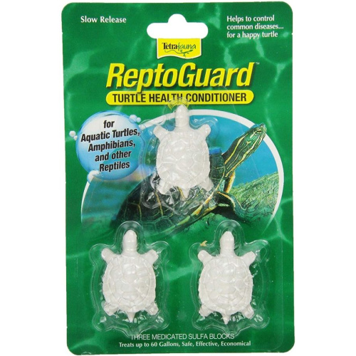 Tetrafauna Happy Turtle ReptoGuard is a medicated sulfa block that treats water in turtle tanks and amphibious terrariums to help control common diseases. Slowly dissolving block is ideal for use with aquatic turtles, amphibians, and other reptiles.