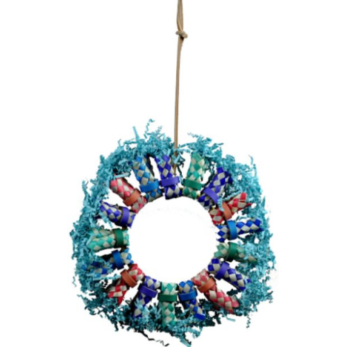A&E Cage Company Happy Beaks Fire Ring Bird Toy will definitely spark your birds interest! The colorful finger traps will keep your birds attention, while the shredded paper inside will encourage them to forage. You can even put some of your birds favorite greats in the finger traps!
