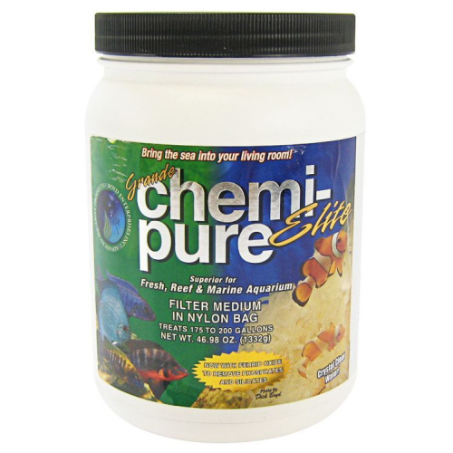 Chemi-Pure Elites unique formulation enhances aquarium health and supports longer fish life. It helps eliminate foul odors, removes toxic elements such as copper and phenol, has a safe pH range, reduces water changes and causes no osmotic shock or ion antagonism. It increases appetites of all fish species with no acclimation time, supporting healthy metabolism.