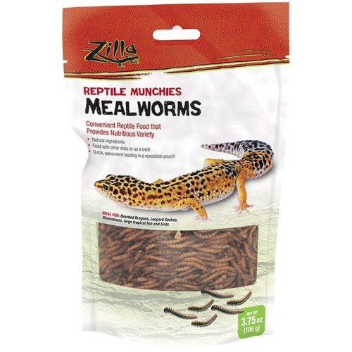 Zilla Mealworm Reptile Munchies are 100% natural and provide insect-eating reptiles, birds and tropical fish the fat they need to stay healthy. Mealworms are quick, convenient, and perfect for adding variety to your pets diet or as a special treat.