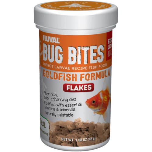 Fluval Bug Bites is a complete fish food that features a unique insect-based formulation, enriched with multiple quality proteins and carbohydrates that are ideal for goldfish for aquariums or ponds. Insects are hunted by fish in the wild as they offer a widely available food source.